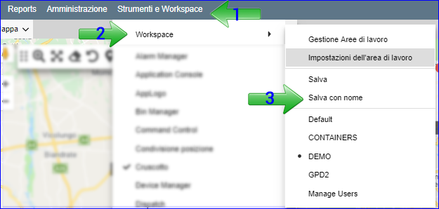 Per salvare la tua disposizione clicca su "Salva con nome" nel sottomenu "Workspace":