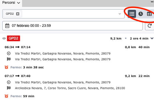 Per alcuni account è disponibile anche una versione differente per la gestione dei percorsi. Selezionare il(i) veicolo(i) del quale si intende visualizzare il percorso.
