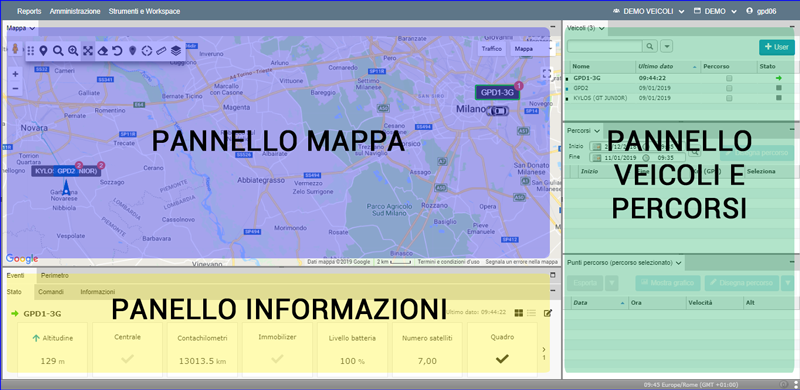L'interfaccia di localizzazione e controllo satellitare consente la registrazione di note per ciascun mezzo in differenti categorie, personalizzabili ...