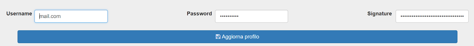 Nella pagina che si aprirà riportare i campi precedentemente annotati e procedere cliccando il pulsante “Aggiorna profilo”.