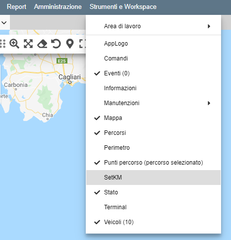 Selezionare quindi la voce SetKM dal menu Strumenti e Workspace.