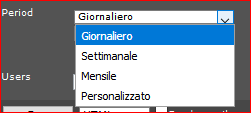 E' possibile anche personalizzare il periodo selezionando la scelta dall'apposito menu a tendina.